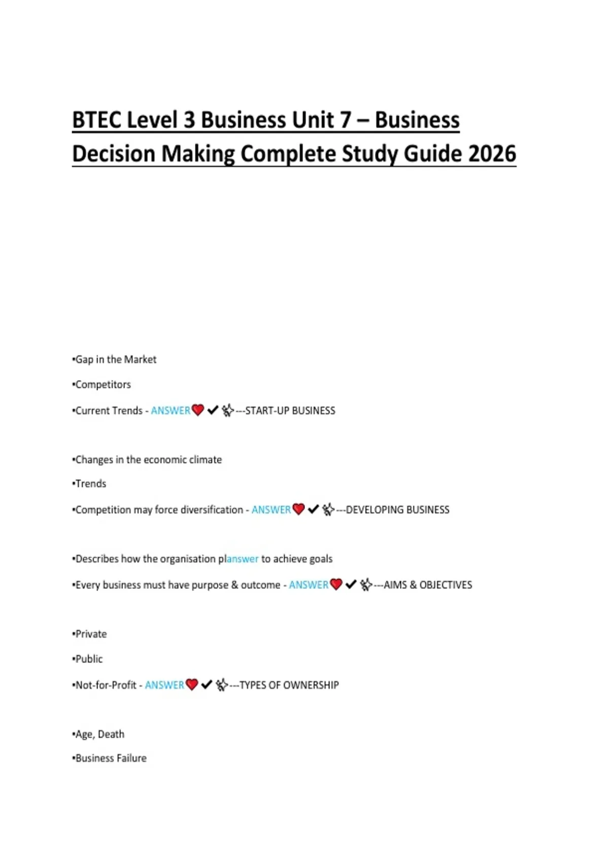 Master BTEC Level 3 Business Unit 7: Business Decision Making (2026) with this complete study guide. Covers all learning outcomes (A–G) with detailed explanations, step-by-step frameworks, practical examples, and revision strategies to help students analyze business problems, make effective decisions, and excel in assignments and exams.