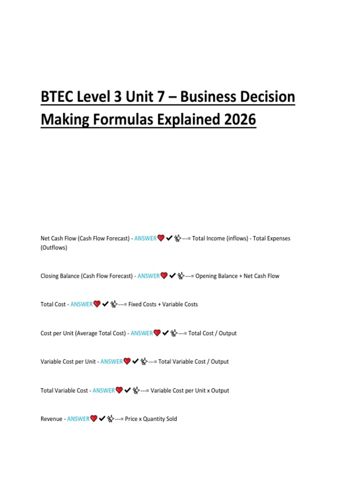 Variable Cost per Unit - ANSWER ✔✨---= Total Variable Cost / Output