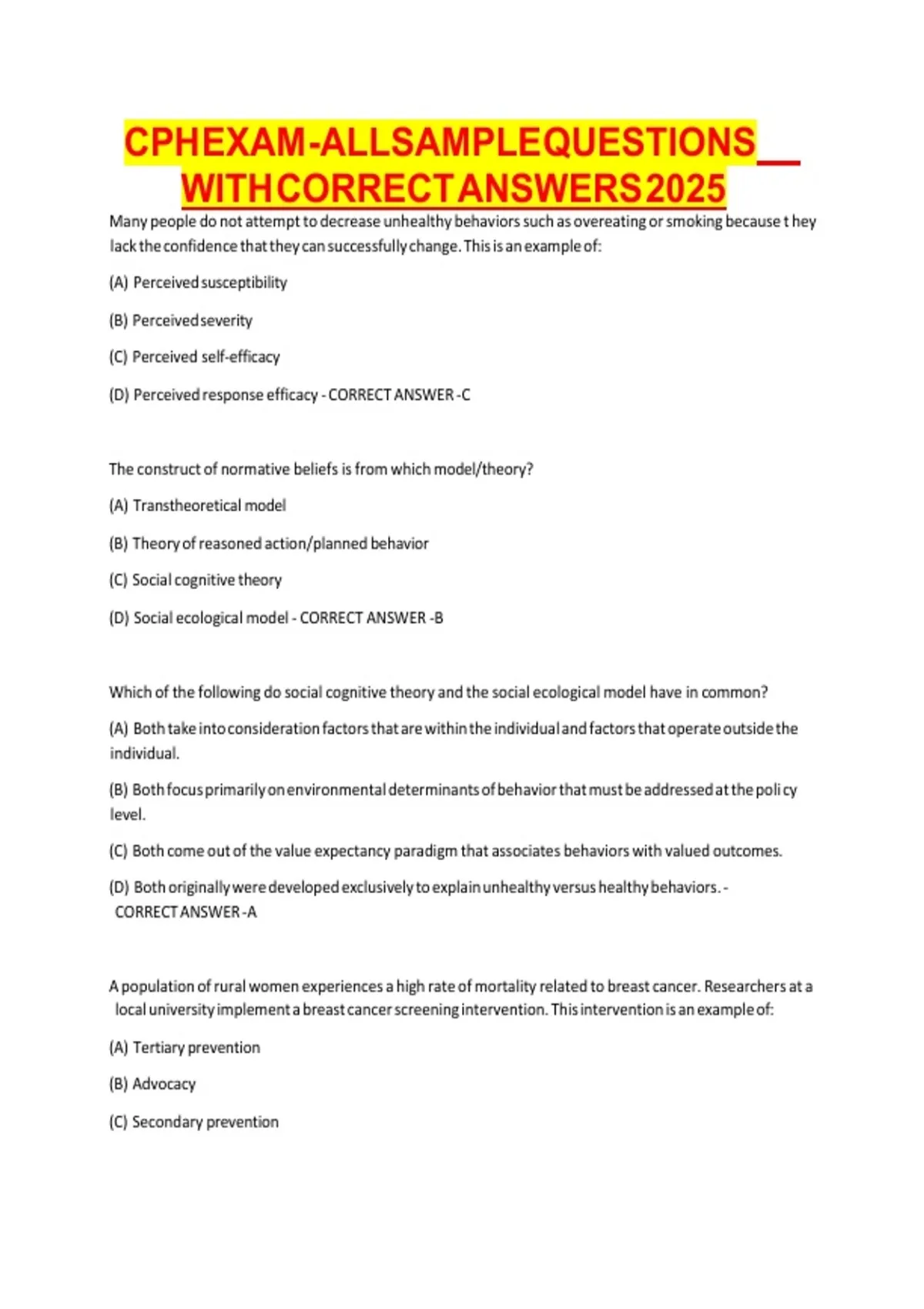 CPH EXAM - ALL SAMPLE QUESTIONS WITH CORRECT ANSWERS