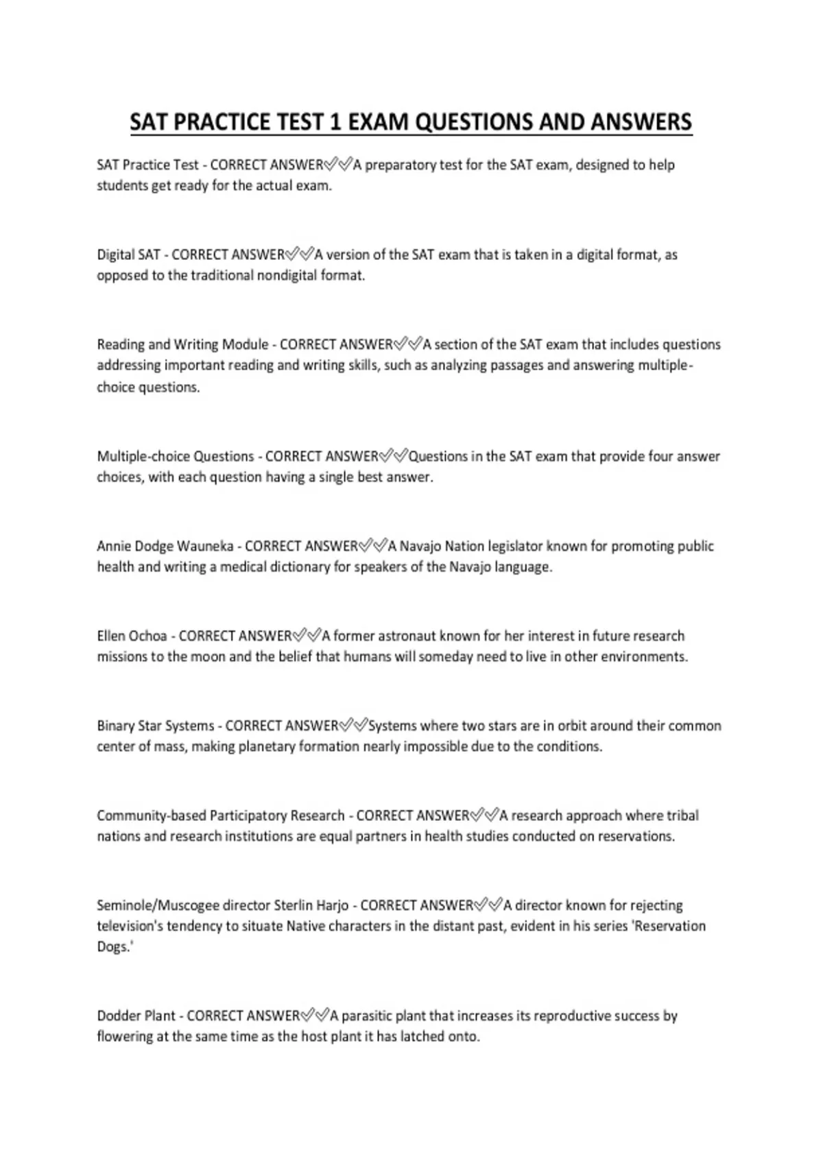 SAT PRACTICE TEST 1 EXAM QUESTIONS AND ANSWERS