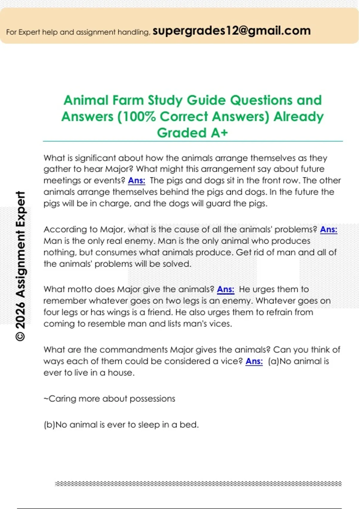 Animal Farm Study Guide Questions and Answers (100% Correct Answers) Already Graded A+