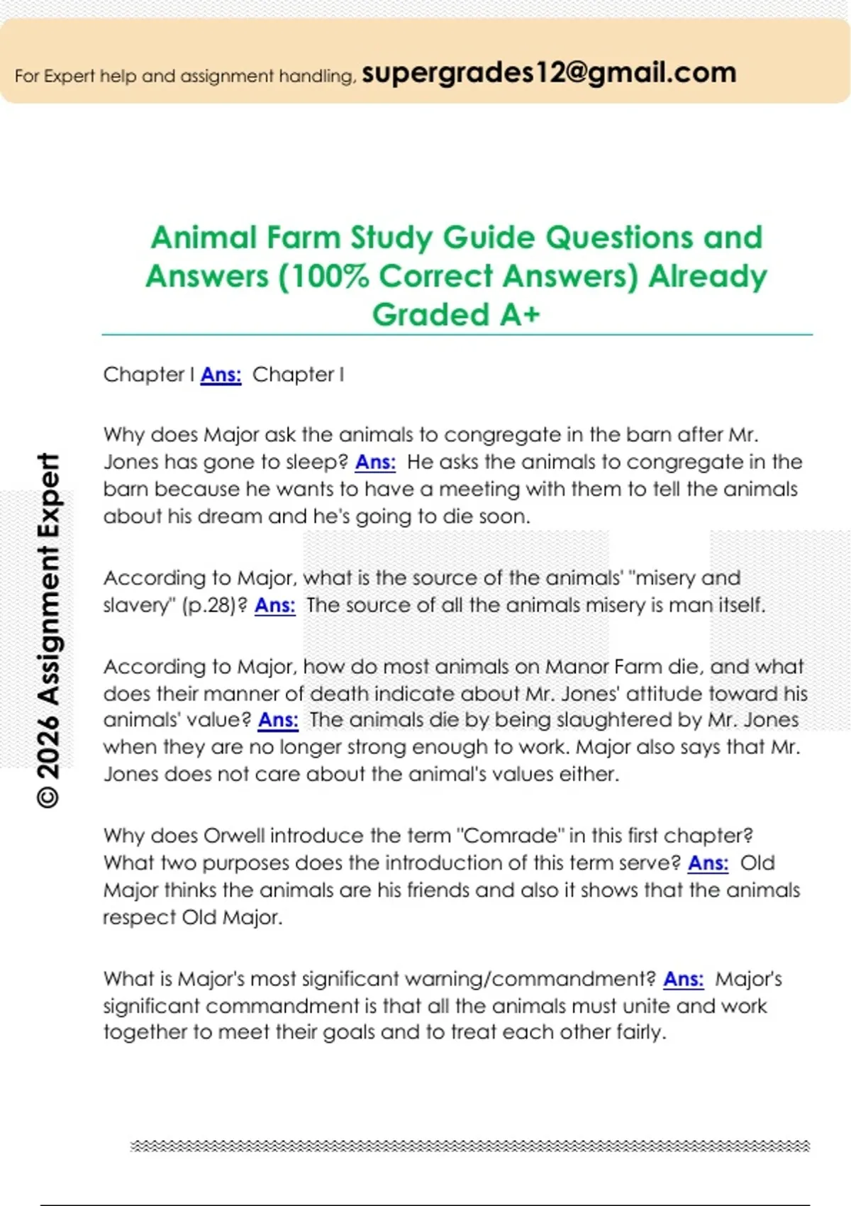Animal Farm Study Guide Questions and Answers (100% Correct Answers) Already Graded A+