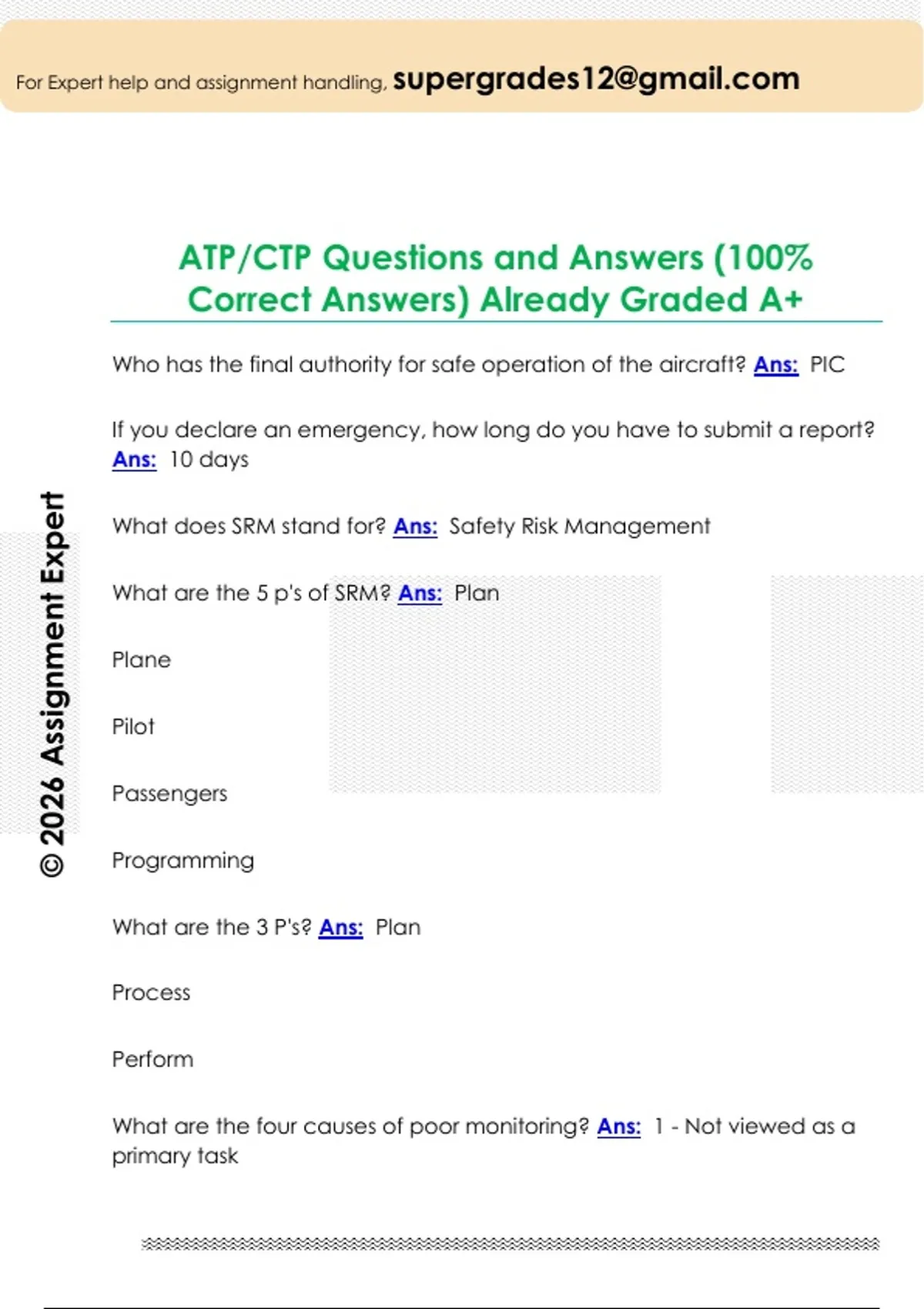 ATP/CTP Questions and Answers (100%