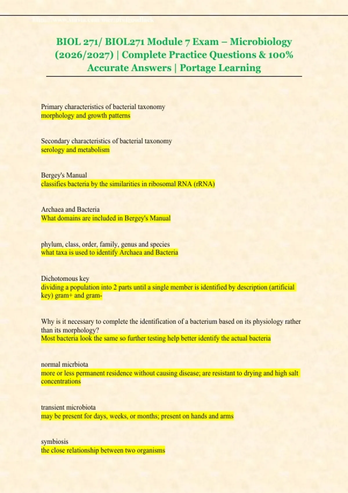 BIOL 271/ BIOL271 Module 7 Exam – Microbiology