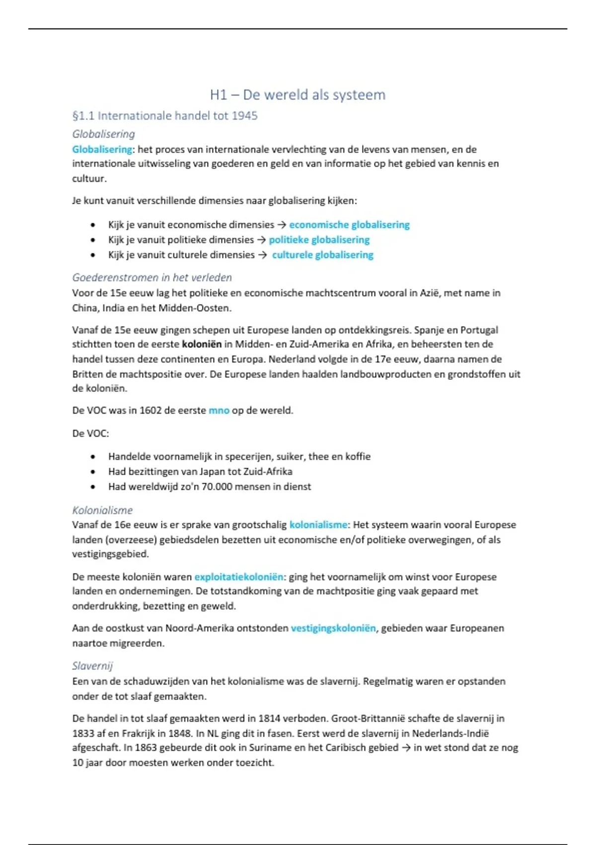 Samenvatting 'de Geo' globalisering H1