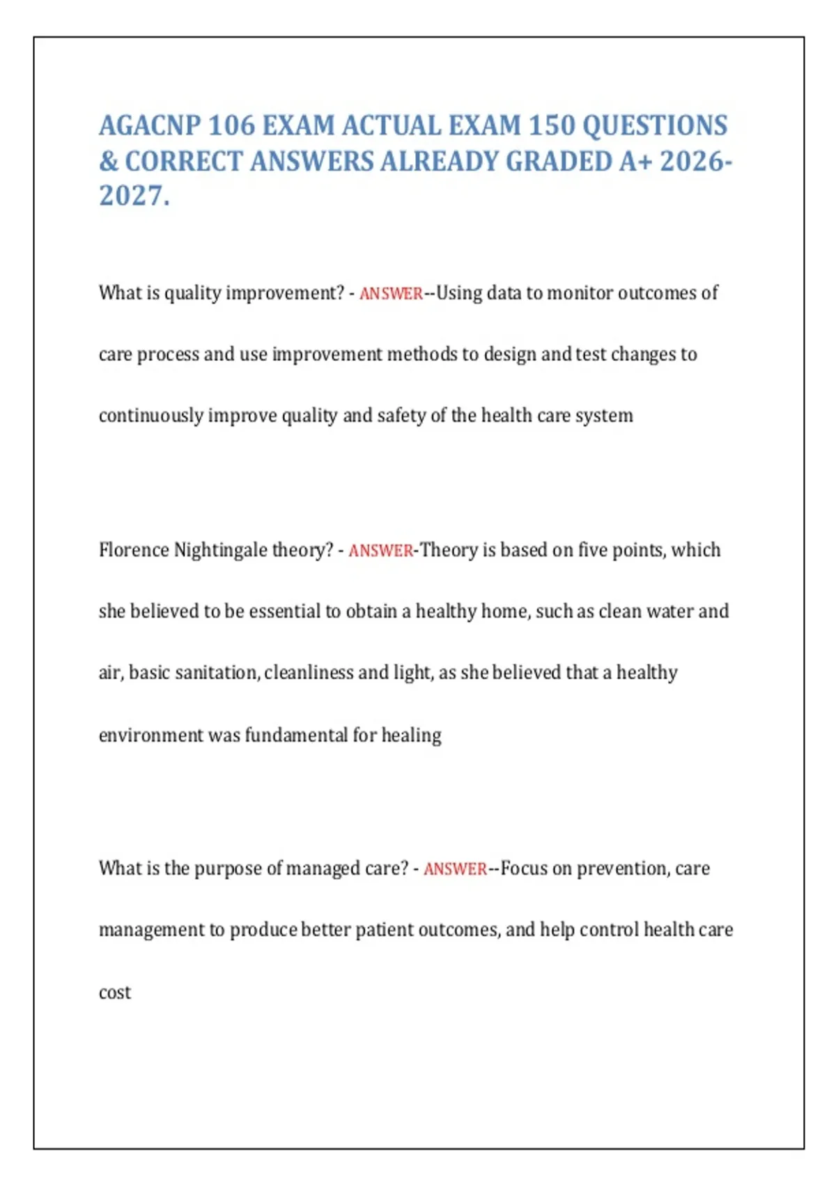 AGACNP 106 Exam Prep: 150 Practice Questions & Verified Answers ( Edition)