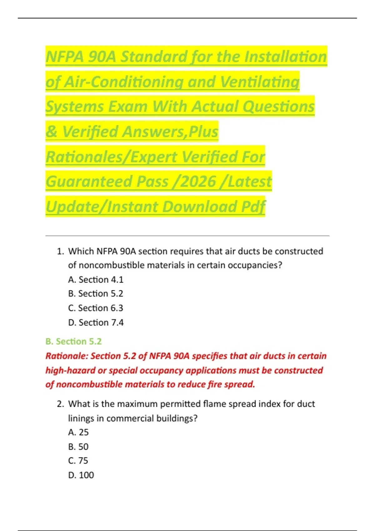 NFPA 90A Standard for the Installation of Air-Conditioning and Ventilating Systems Exam With Actual Questions & Verified Answers,Plus Rationales/Expert Verified For Guaranteed Pass /2026 /Latest Update/Instant Download Pdf