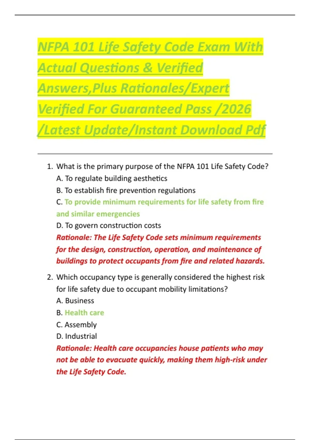 NFPA 101 Life Safety Code Exam With Actual Questions & Verified Answers,Plus Rationales/Expert Verified For Guaranteed Pass /2026 /Latest Update/Instant Download Pdf