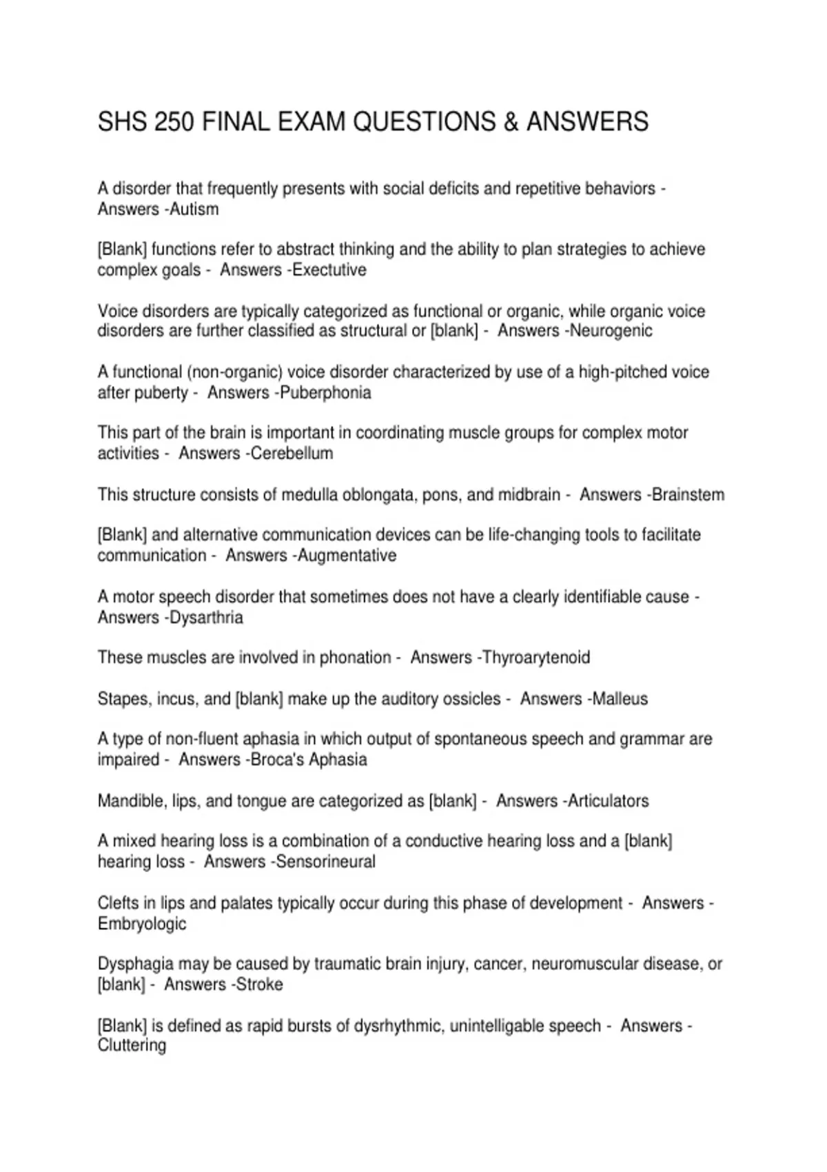 SHS 250 FINAL EXAM QUESTIONS & ANSWERS