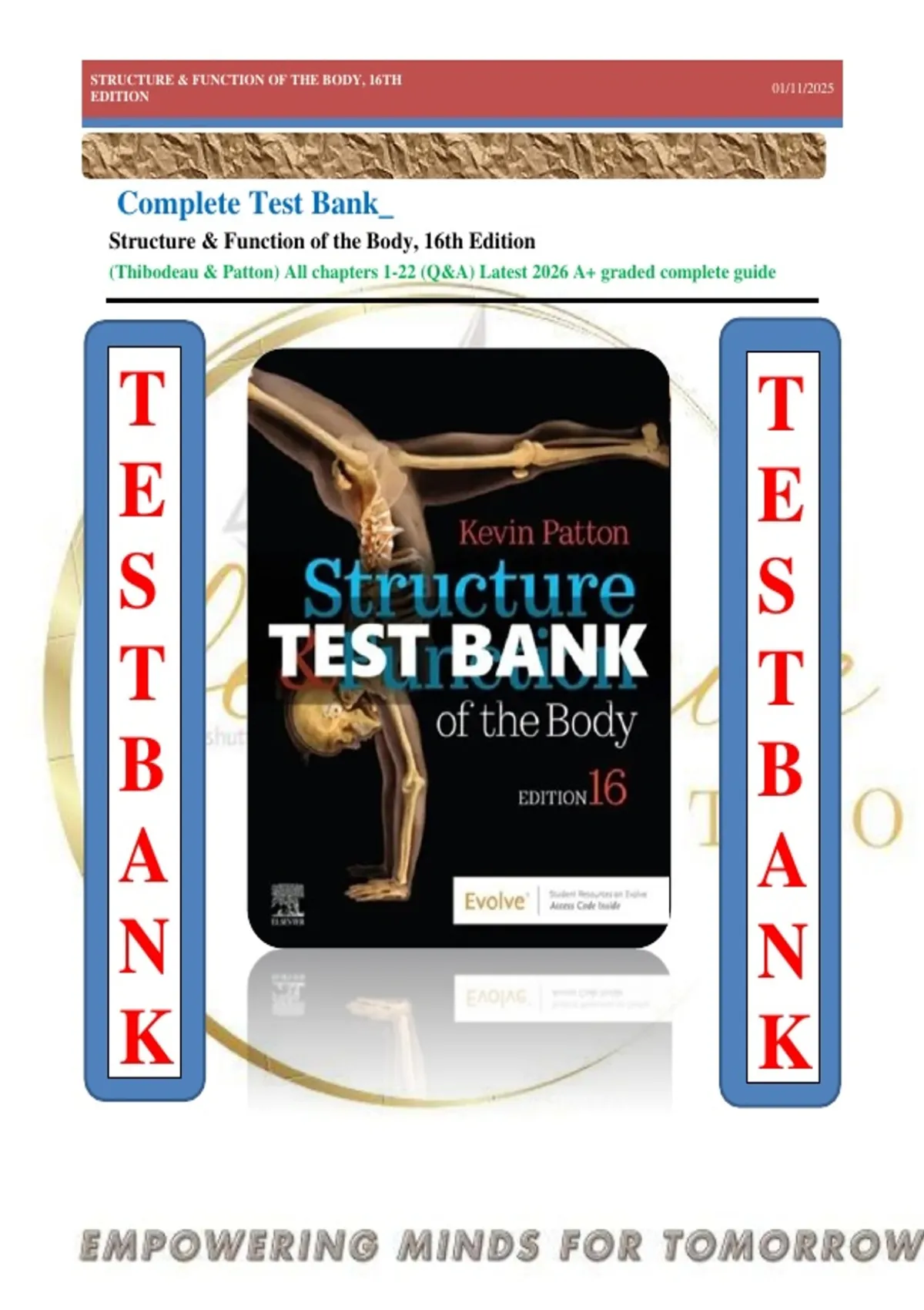Structure & Function of the Body, 16th Edition (Thibodeau & Patton) All chapters 1-22 (Q&A) Latest 2026 A+ graded complete guide