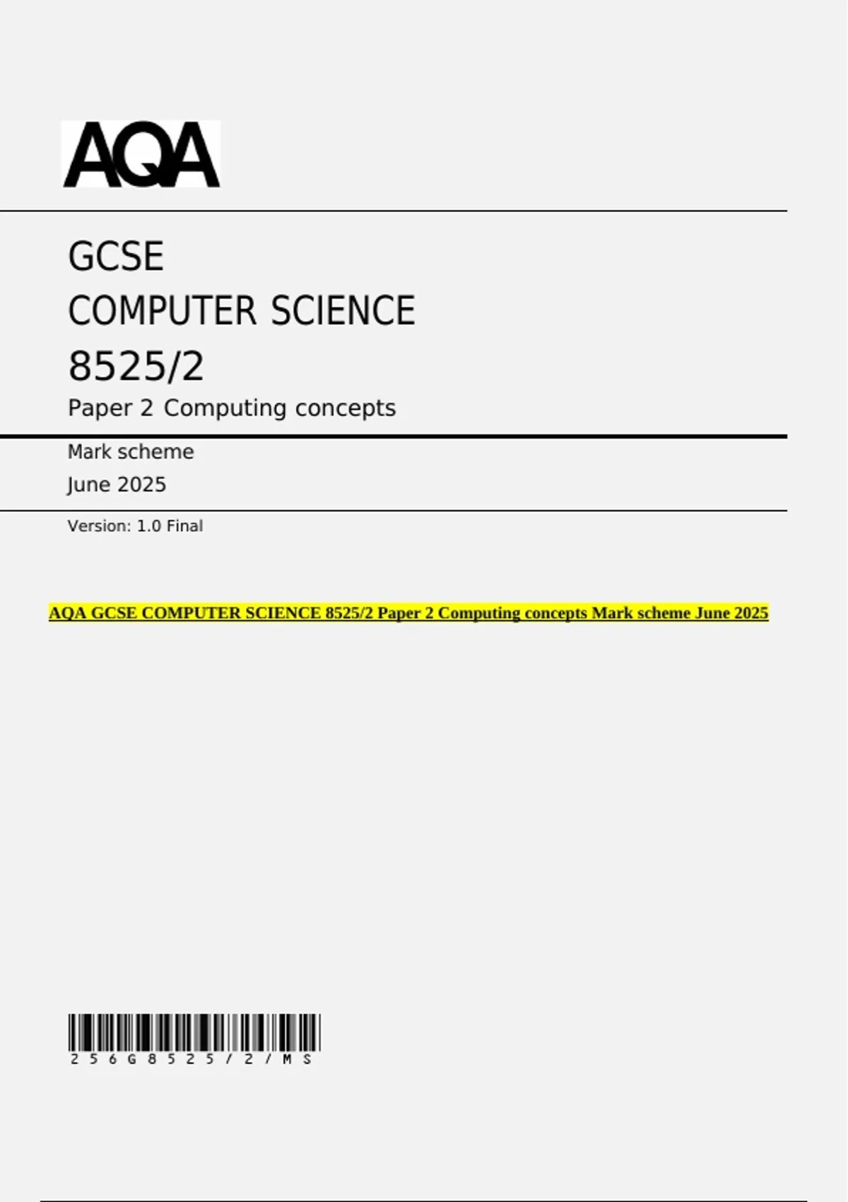 AQA GCSE COMPUTER SCIENCE 8525/2 Paper 2 Computing concepts Mark scheme June 2025