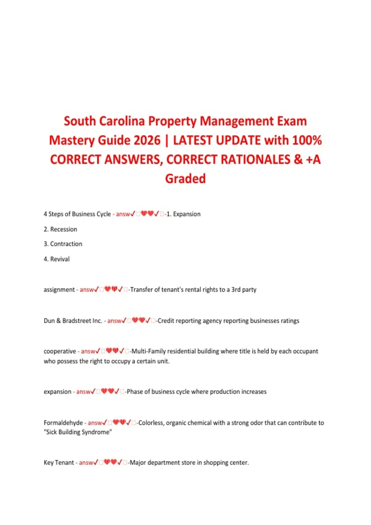 South Carolina Property Management Exam Mastery Guide 2026 | LATEST UPDATE with 100% CORRECT ANSWERS, CORRECT RATIONALES & +A Graded