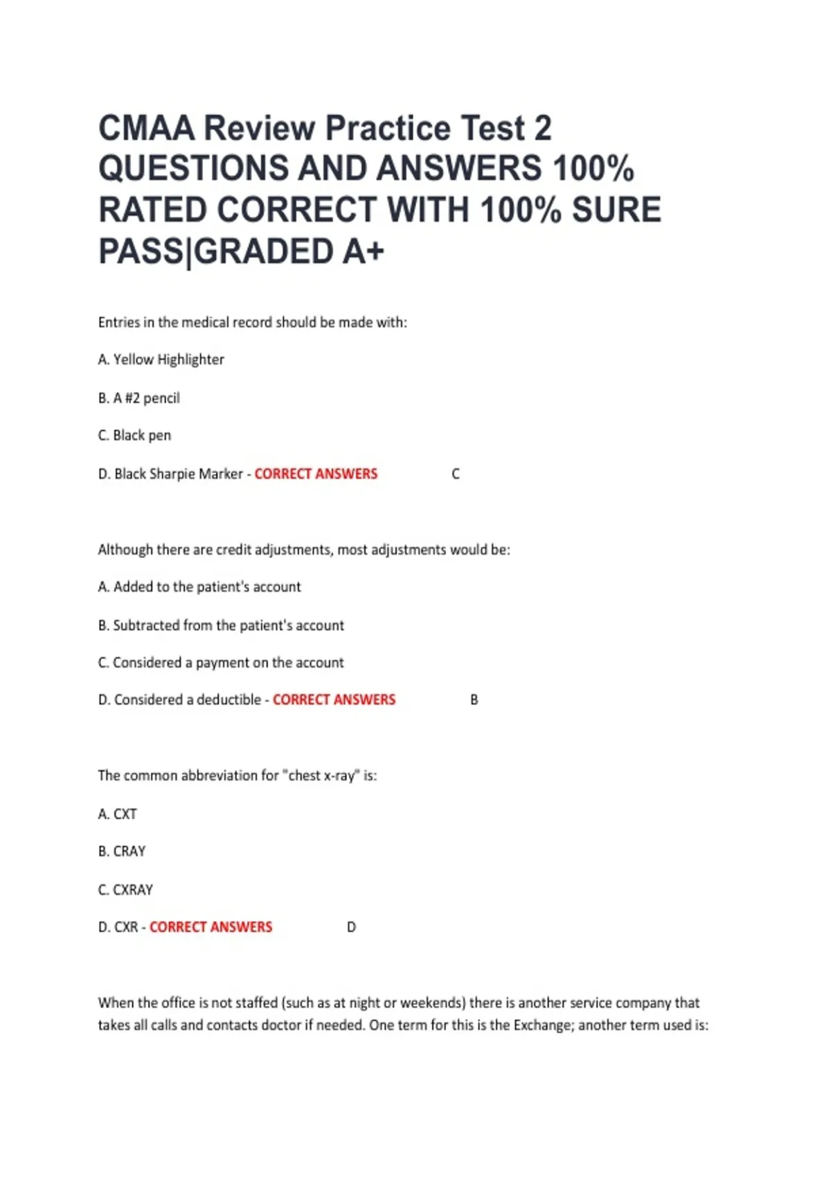 CMAA Review Practice Test 2 QUESTIONS AND ANSWERS 100% RATED CORRECT WITH 100% SURE PASS|GRADED A+