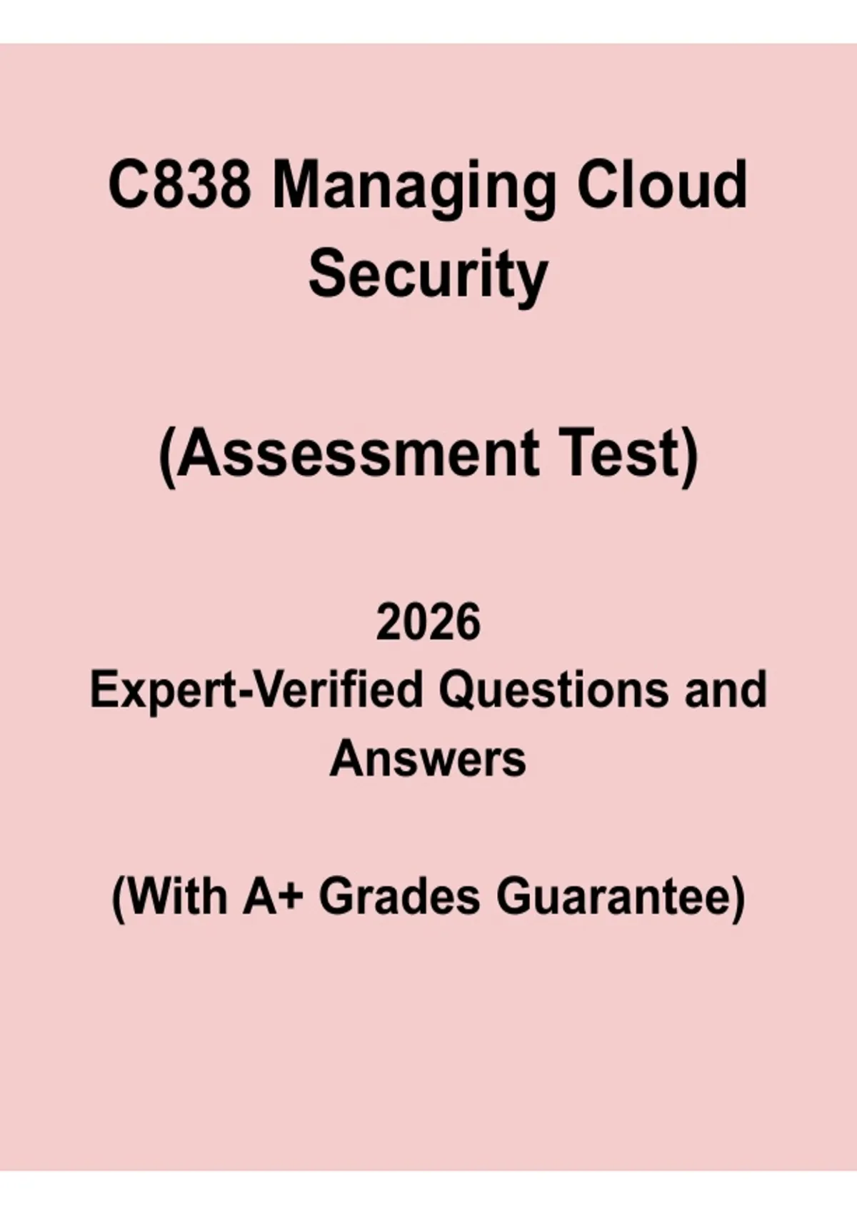 This C838 Managing Cloud Security PDF is designed to support WGU students and IT learners preparing for the Managing Cloud Security course by covering key concepts aligned with the official assessment objectives. The document explores cloud security governance, risk management, compliance, identity and access management, data protection, and security monitoring in cloud environments. Ideal for exam preparation, revision, and structured learning, this resource helps students strengthen their understanding of cloud security principles required to successfully pass the C838 assessment.