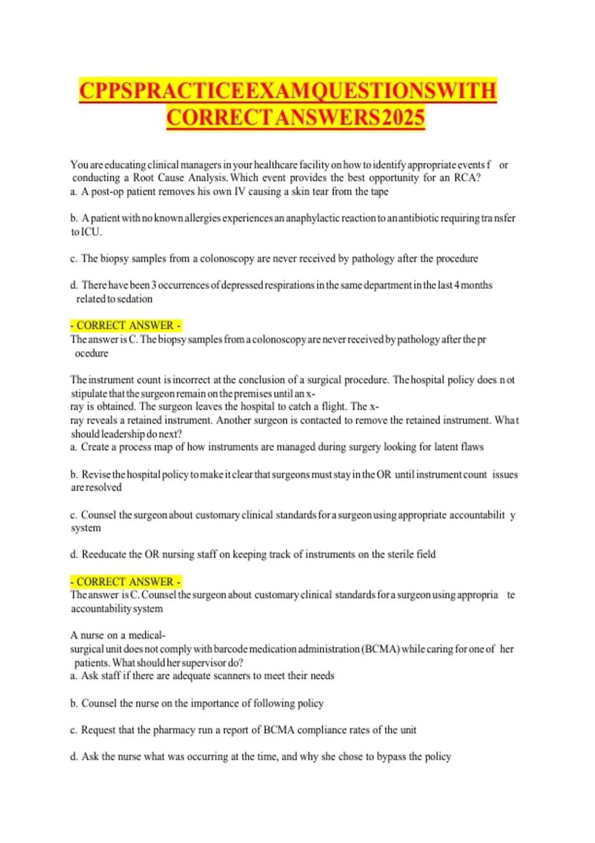 CPPS PRACTICE EXAM QUESTIONS WITH CORRECT ANSWERS