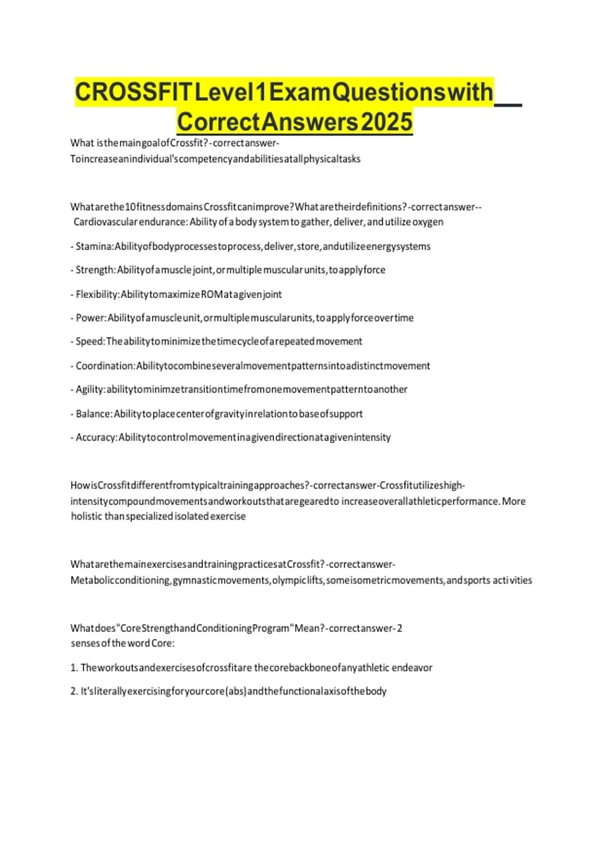CROSSFIT Level 1 Exam Questions with v v v v v
