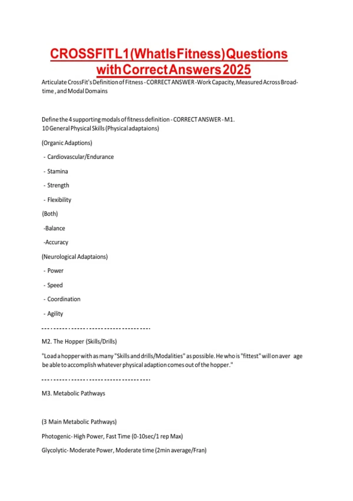 CROSSFIT L1 (What Is Fitness) Questions v v v v v
