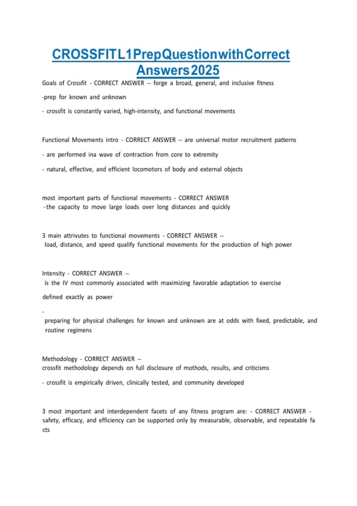 CROSSFIT L1 Prep Question with Correct v v v v v