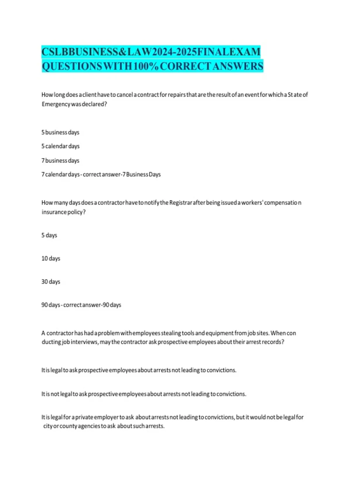 CSLB BUSINESS & LAW FINAL EXAM QUESTIONS WITH 100- CORRECT ANSWERS.