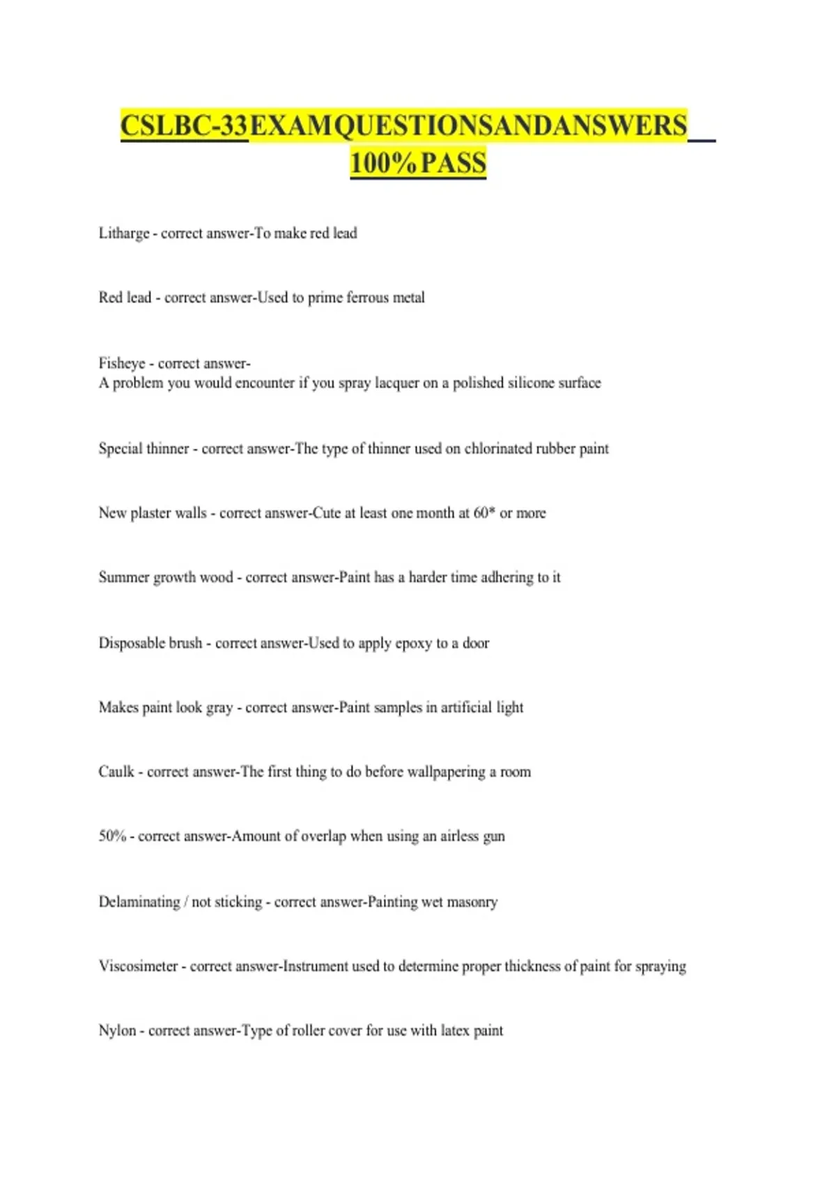 CSLBC-33 EXAM QUESTIONSANDANSWERS v v v v v
