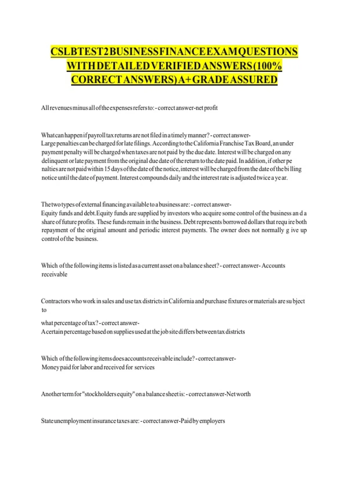 CSLBTEST2 BUSINESS FINANCE EXAM QUESTIONS v v v v v v