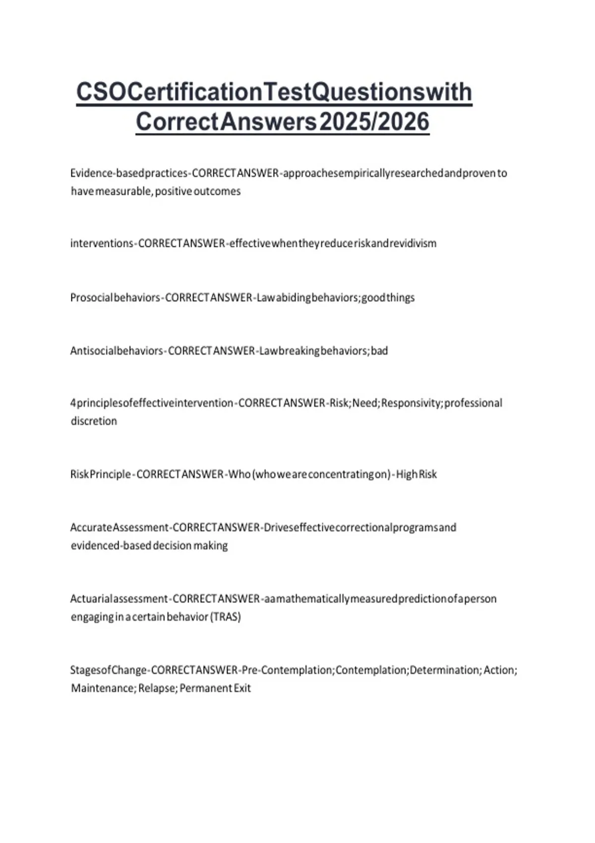 CSO Certification Test Questions with Correct Answers