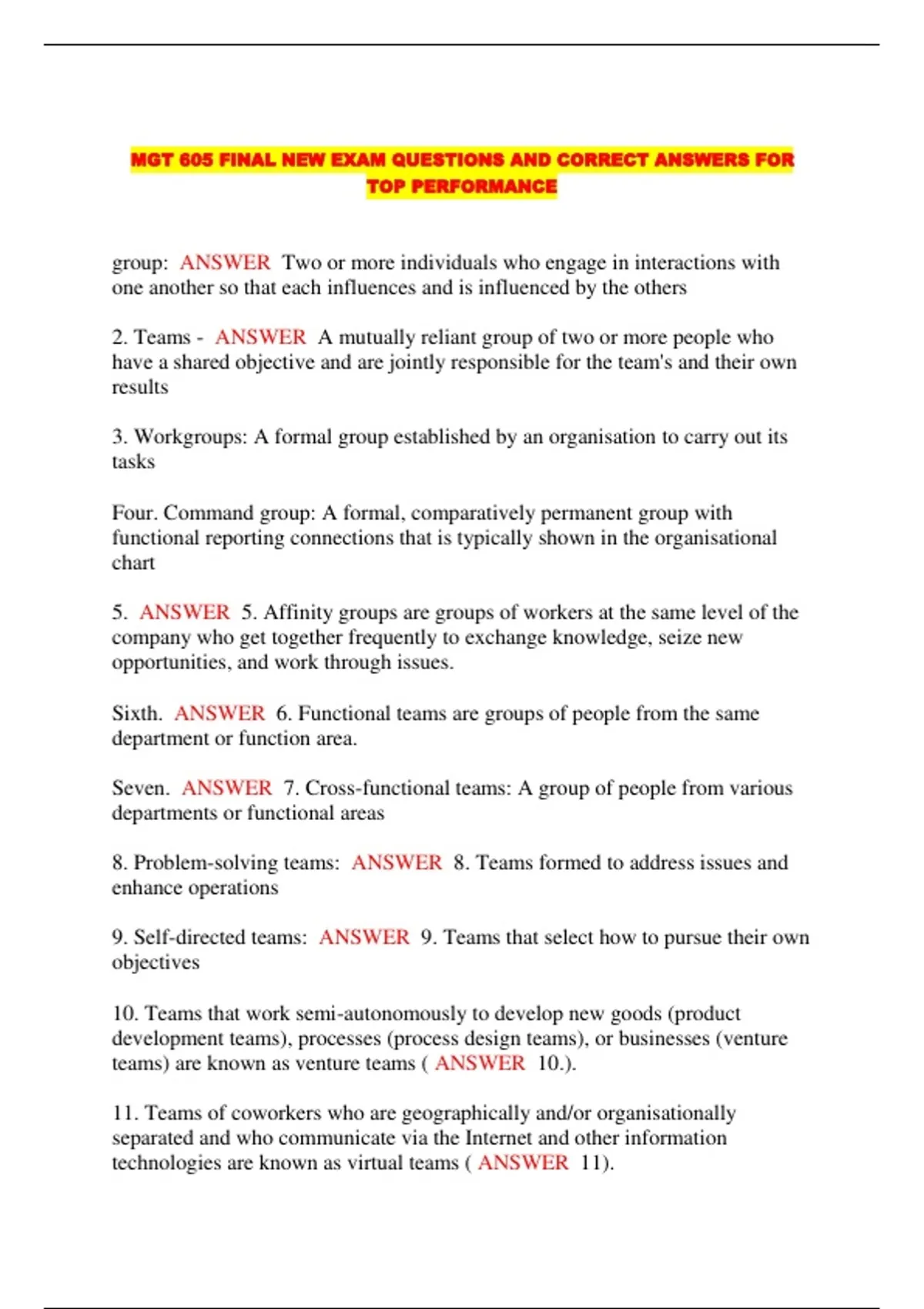 MGT 605 FINAL NEW EXAM QUESTIONS AND CORRECT ANSWERS FOR TOP PERFORMANCE