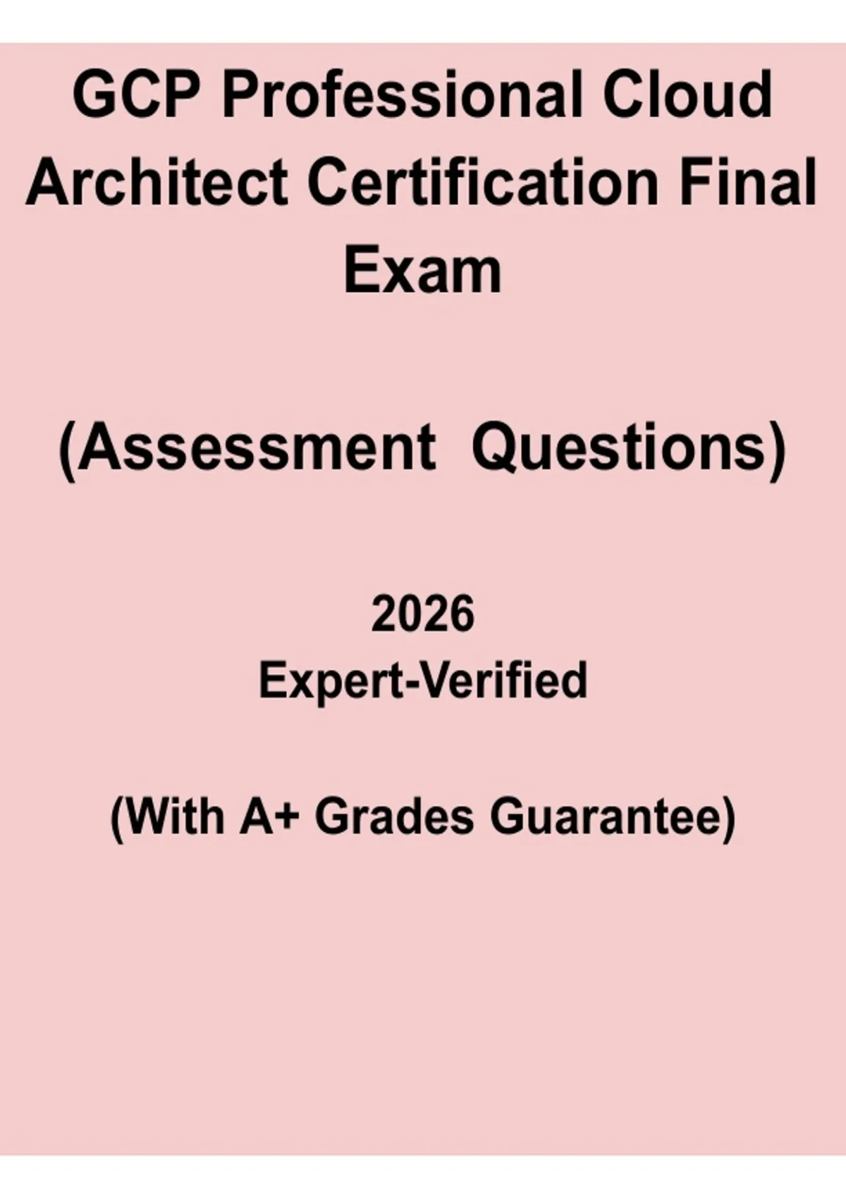 This GCP Professional Cloud Architect Certification Final Exam PDF is a comprehensive 2026 study resource designed to help learners prepare for the Google Cloud Professional Cloud Architect certification exam. Covering essential topics such as cloud architecture design, security, networking, data management, and GCP service implementation, this guide includes exam-style questions and practical scenarios to reinforce understanding. Ideal for structured study, self-assessment, and final exam readiness, this resource equips IT professionals with the knowledge and confidence needed to pass the exam and excel as a certified Google Cloud Architect.