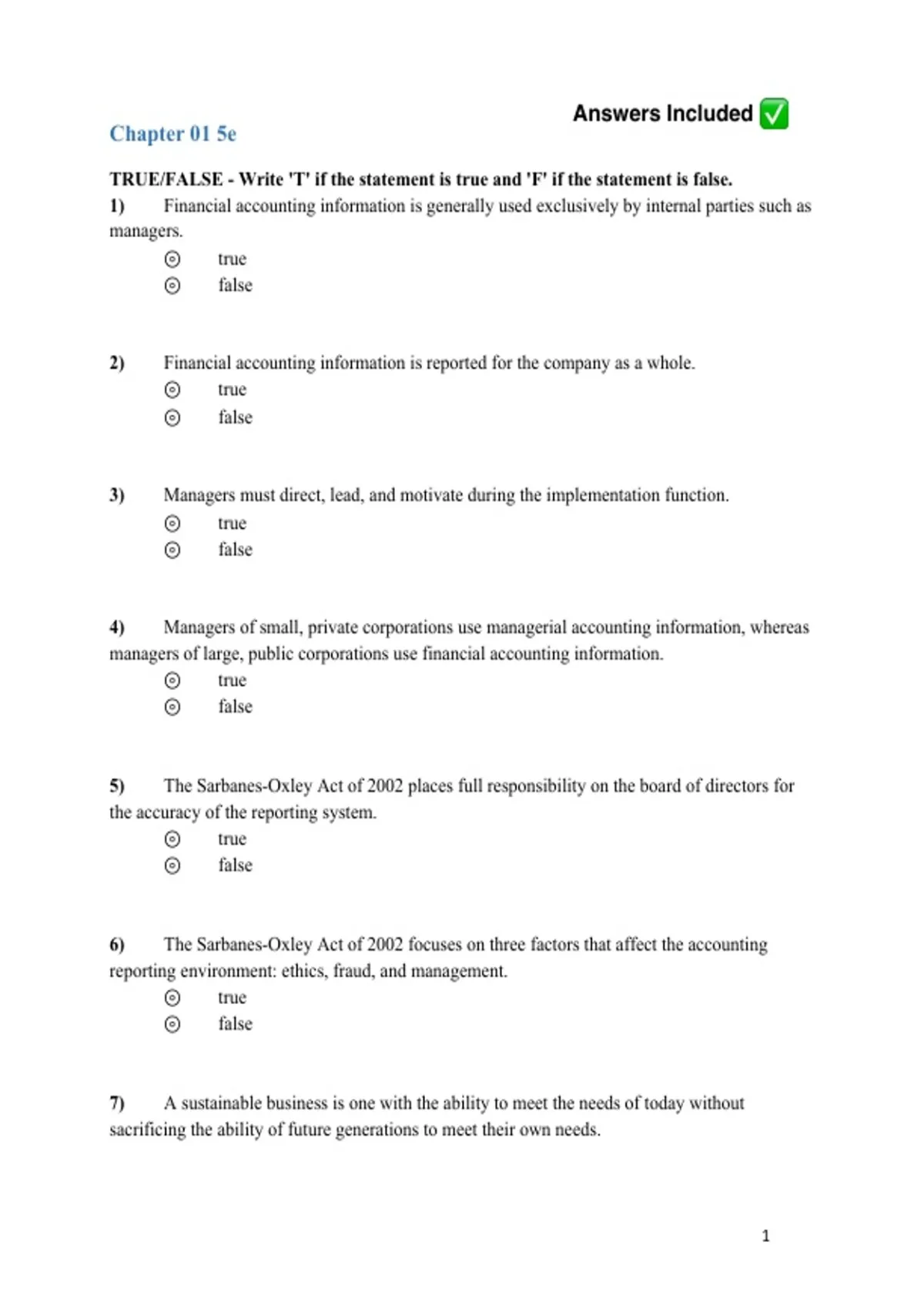 Download the Test Bank for Managerial Accounting 5th Edition by Stacey Whitecotton & Robert Libby 2026 – a complete resource with all chapters fully covered, verified questions, and detailed answers. Covers key managerial accounting concepts including cost behavior, budgeting, performance evaluation, decision making, variance analysis, cost-volume-profit analysis, responsibility accounting, and strategic planning exercises. Perfect for students, instructors, and exam preparation, this comprehensive test bank helps you practice effectively, master managerial accounting principles, and excel in quizzes, midterms, and final exams.