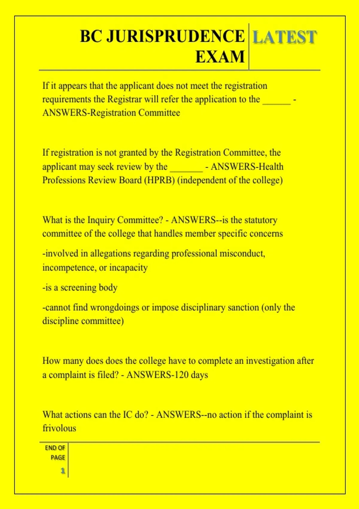 Professions Review Board (HPRB) (independent of the college)