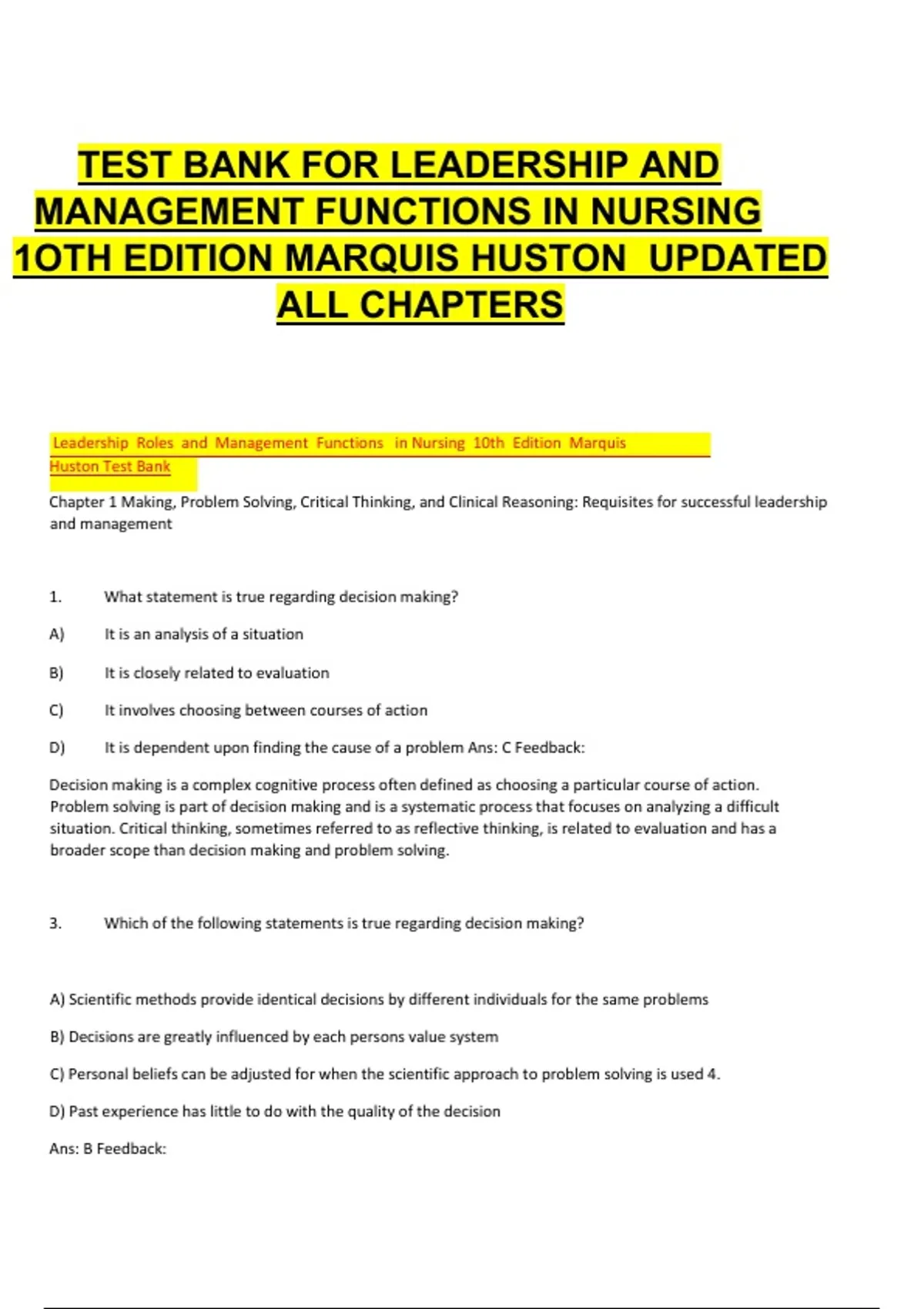Leadership Roles and Management Functions in Nursing 10th Edition Marquis