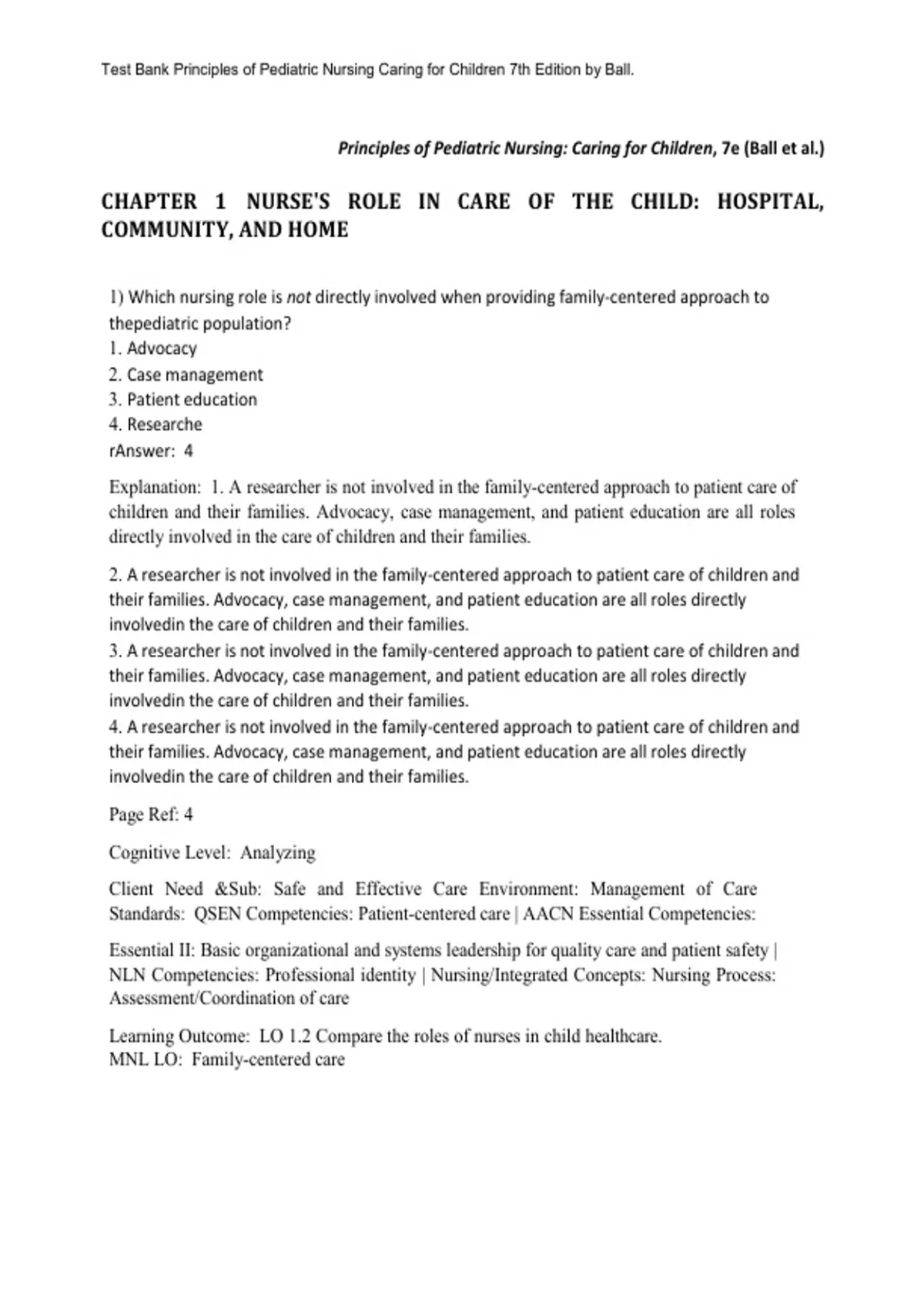 This 2026/2027 Newly Updated Test Bank for Principles of Pediatric Nursing: Caring for Children, 7th Edition by Ball is a comprehensive, exam-focused study resource designed to help nursing students excel in pediatric nursing courses and exams. It includes chapter-by-chapter questions with accurate answers, detailed solutions, and clear rationales aligned with the 7th Edition content. What’s Included: ️ Principles of Pediatric Nursing test bank Questions & Answers ️ Pediatric nursing exam practice with detailed solutions ️ Fully aligned with the 7th Edition by Ball ️ Newly updated for the 2026/2027 academic year ️ Ideal for RN, BSN, PN/LPN, ATI Pediatric Nursing, HESI, and NCLEX-RN review