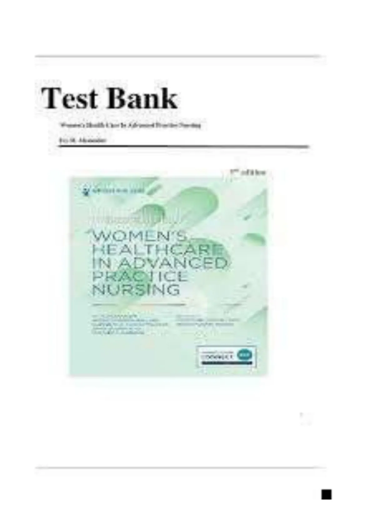 , Womens Health Care in Advanced Practice Nursing 3rd edition Alexander Test Bank