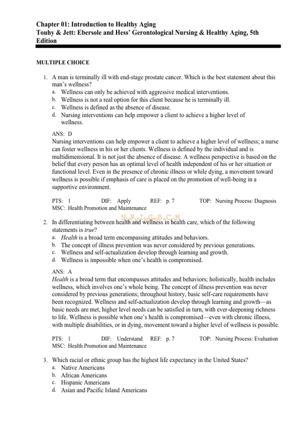 , Ebersole and Hess' Gerontological Nursing and Healthy Aging 5th Edition Touhy Test Bank