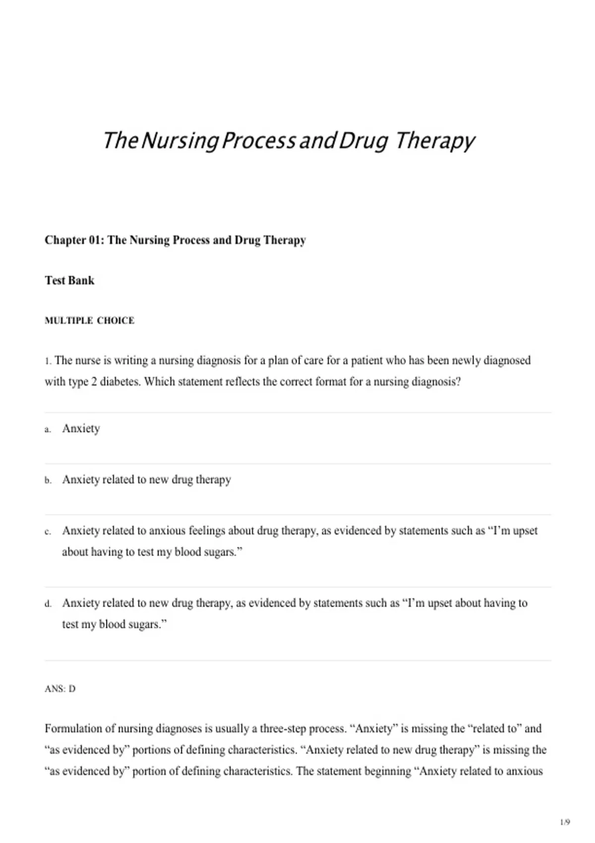 The Nursing Process and Drug Therapy Test Bank