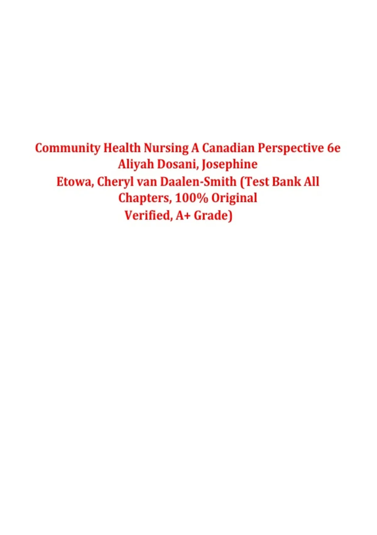 Community Health Nursing A Canadian Perspective 6e Aliyah Dosani, Josephine