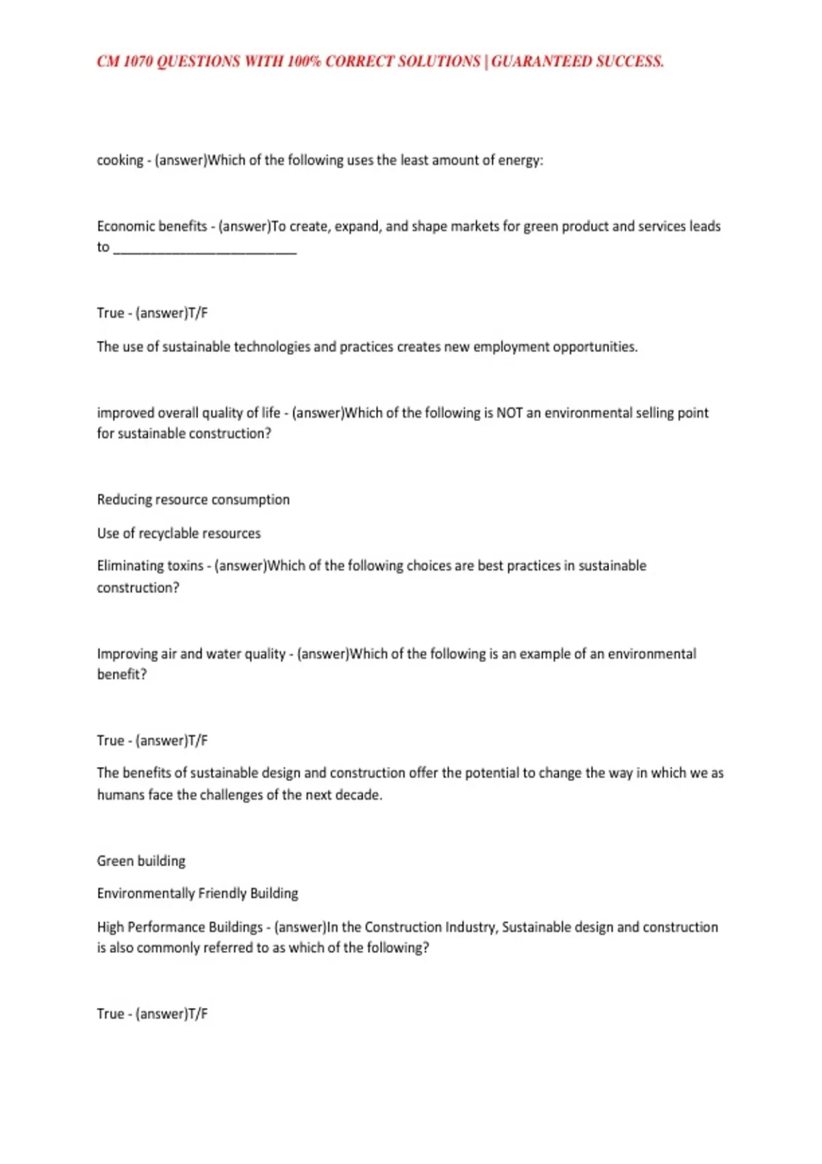 , CM 1070 QUESTIONS WITH 100% CORRECT SOLUTIONS | GUARANTEED SUCCESS.