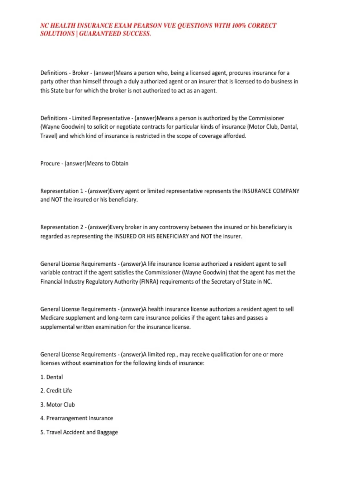 , NC HEALTH INSURANCE EXAM PEARSON VUE QUESTIONS WITH 100% CORRECT