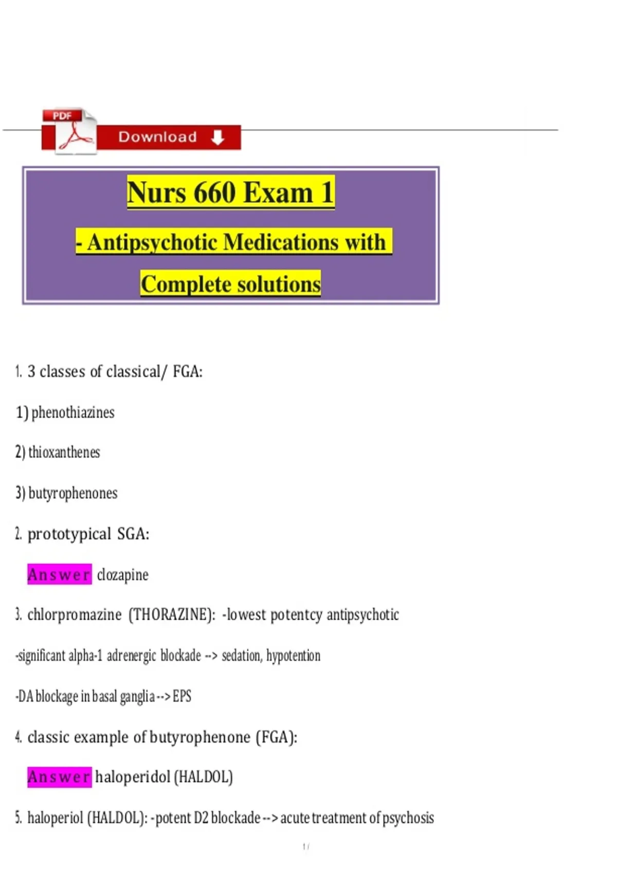 Nurs 660 Exam 1- Antipsychotic Medications with Complete solutions