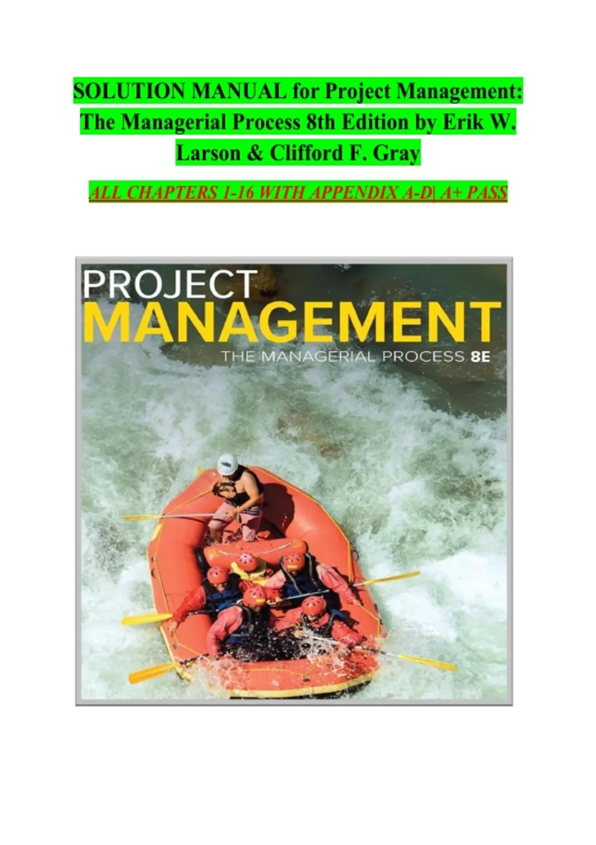 SOLUTION MANUAL for Project Management: The Managerial Process 8th Edition by Erik W. Larson & Clifford F. Gray ALL CHAPTERS 1-16 WITH APPENDIX A-D| A+ PASSSOLUTION MANUAL for Project Management: The Managerial Process 8th Edition by Erik W. Larson & Clifford F. Gray ALL CHAPTERS 1-16 WITH APPENDIX A-D| A+ PASS