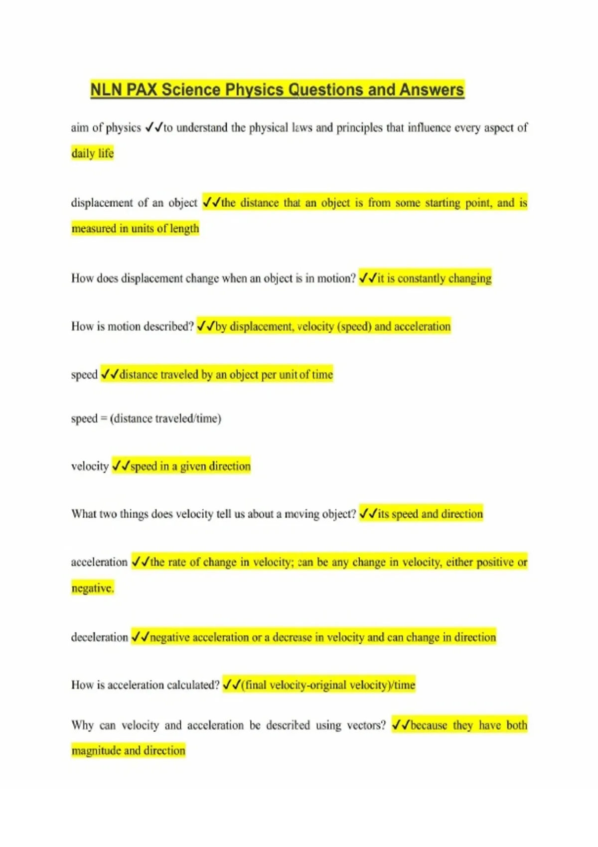 NLN PAX Science Physics Questions and Answers