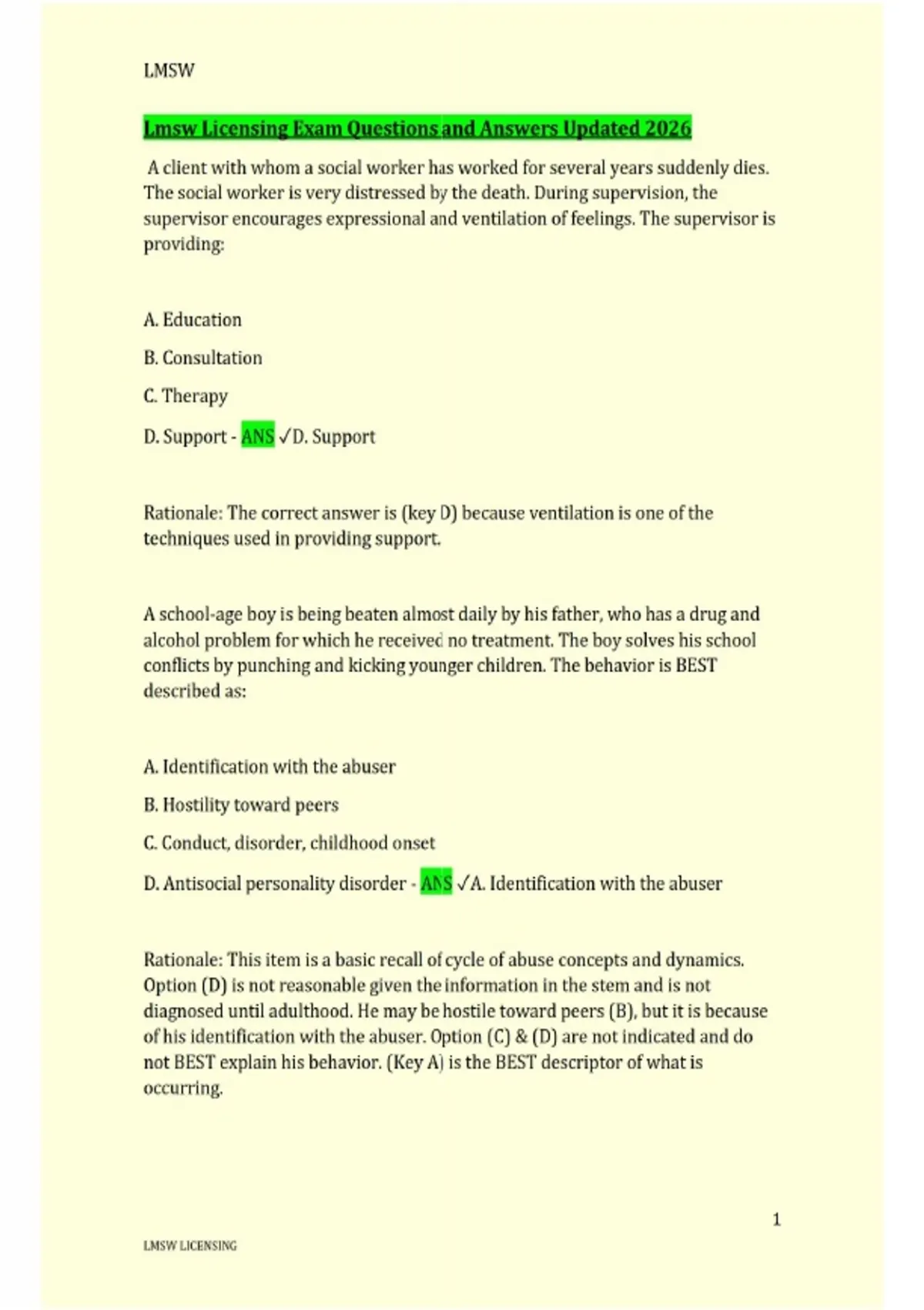 Lmsw Licensing Exam Questions and Answers Updated 2026