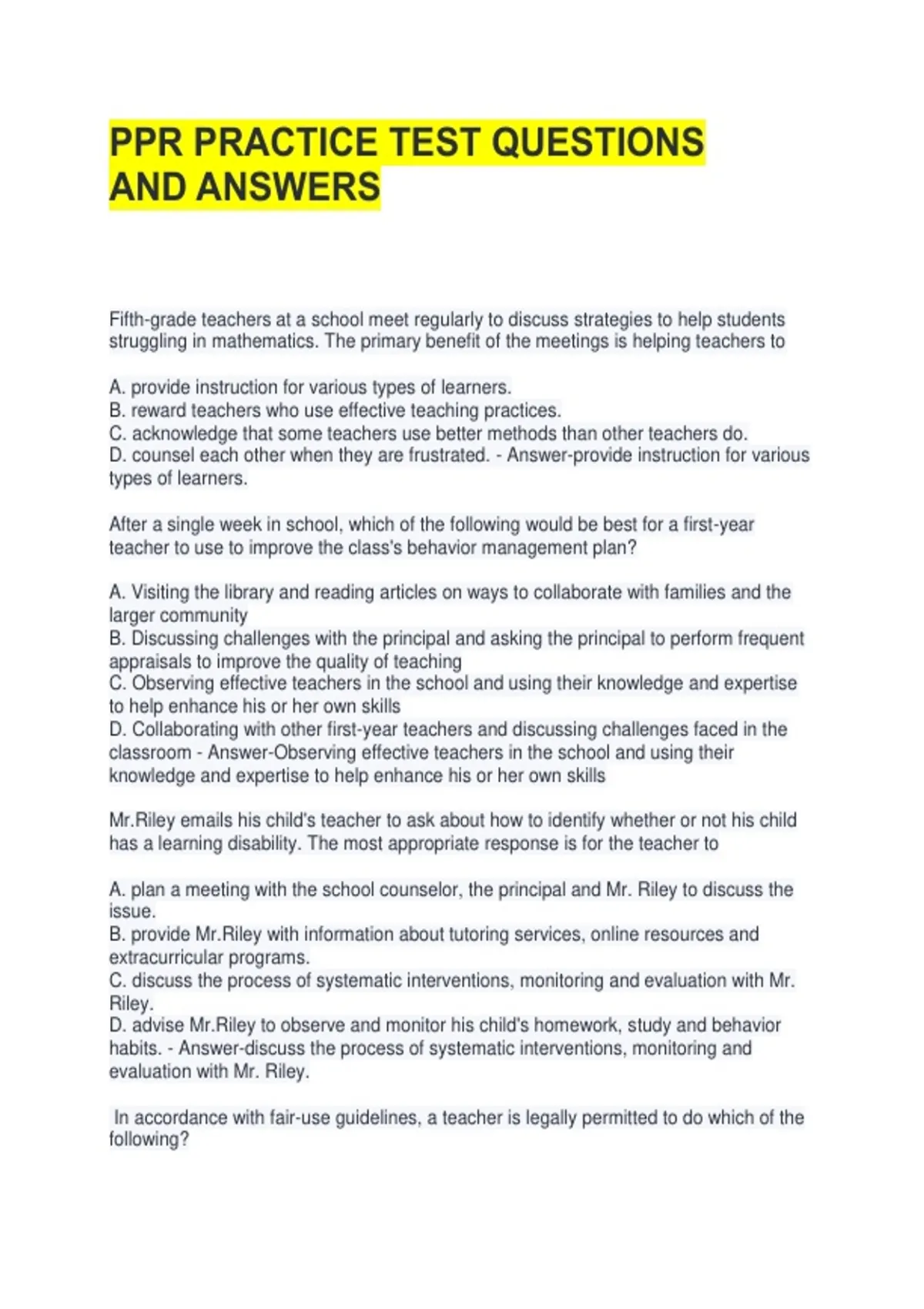 D. counsel each other when they are frustrated. - Answer-provide instruction for various