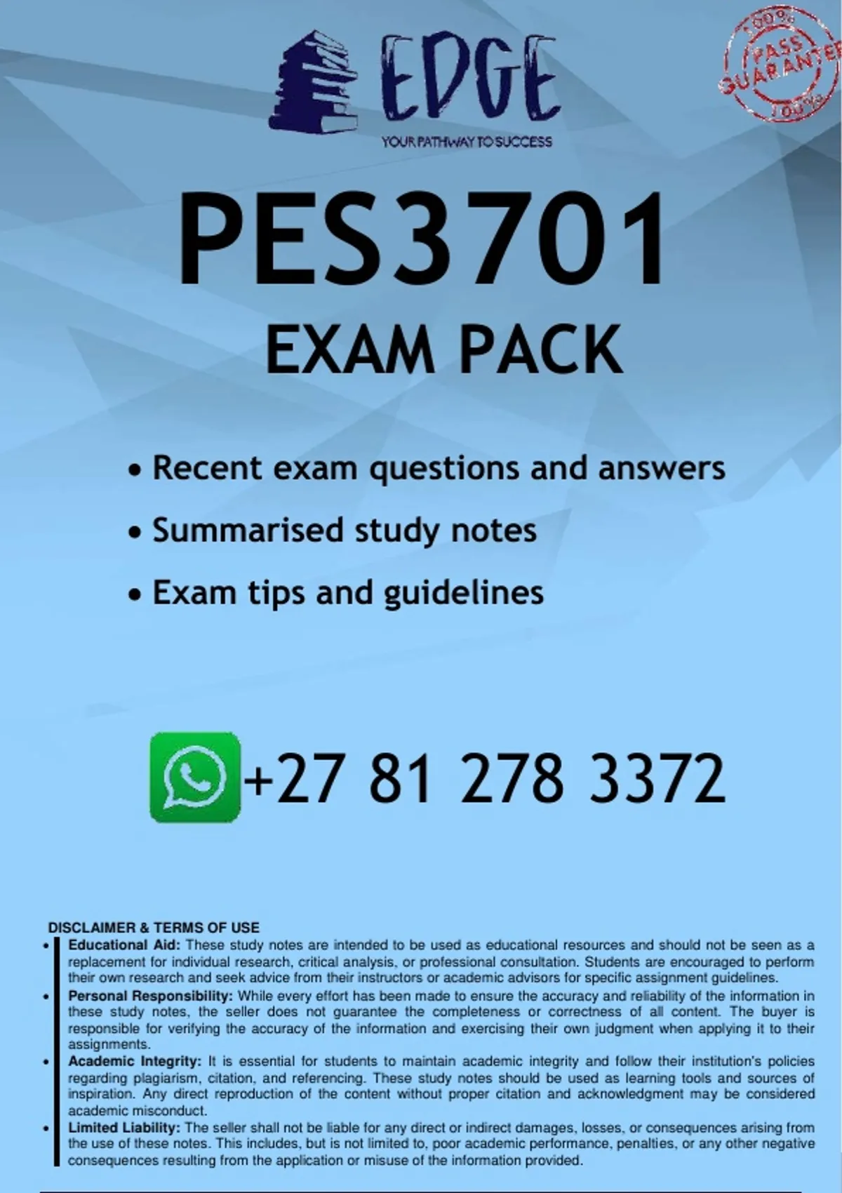 PES3701 EXAM PACK 2026 - DISTINCTION GUARANTEED