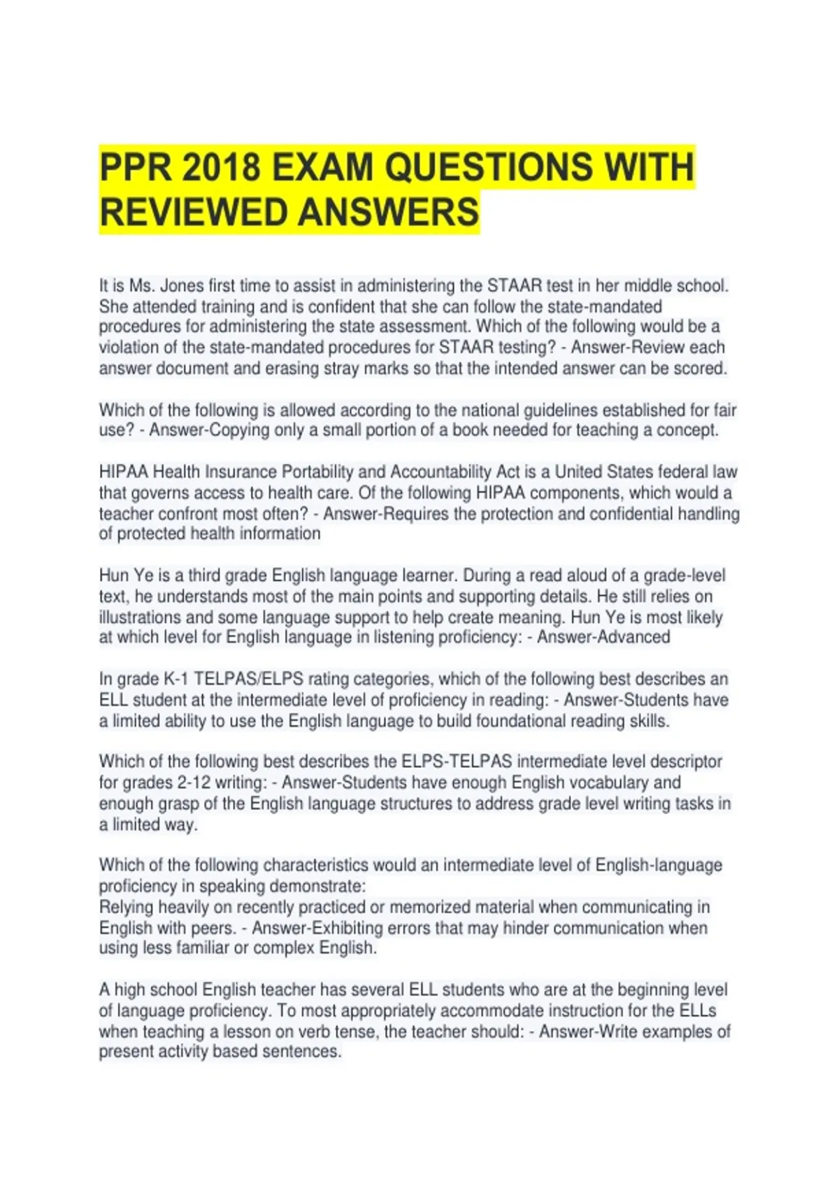 violation of the state-mandated procedures for STAAR testing? - Answer-Review each