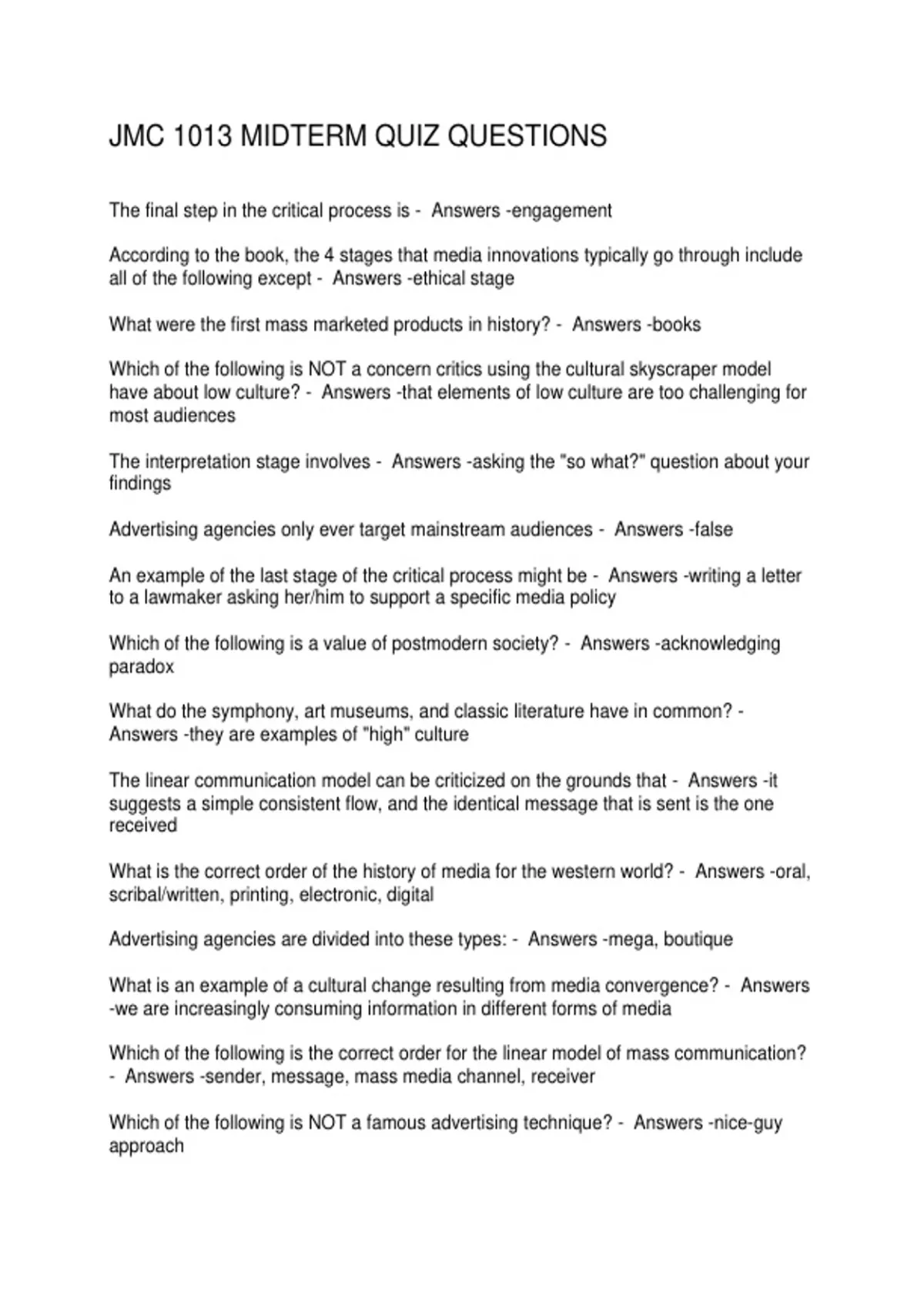 JMC 1013 MIDTERM QUIZ QUESTIONS