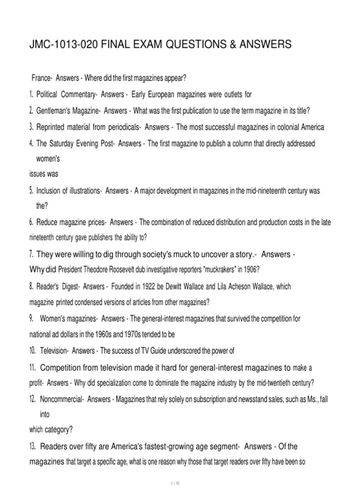 JMC-1013-020 FINAL EXAM QUESTIONS & ANSWERS