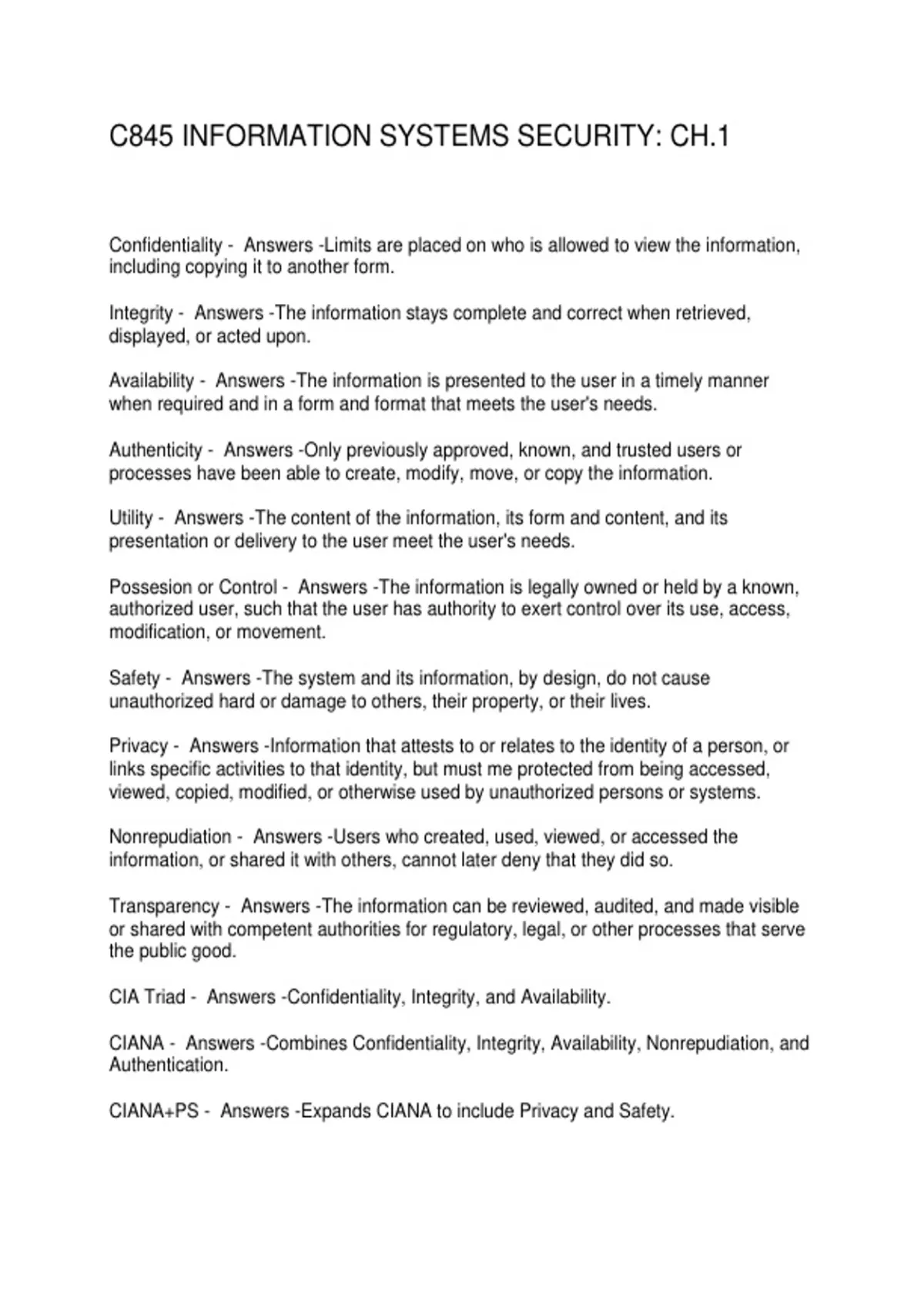 C845 INFORMATION SYSTEMS SECURITY: CH.1