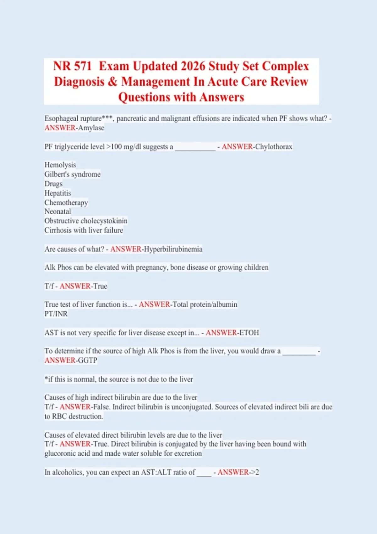 NR 571 Exam 2026: Complex Diagnosis & Management in Acute Care – Study Guide & Q&A