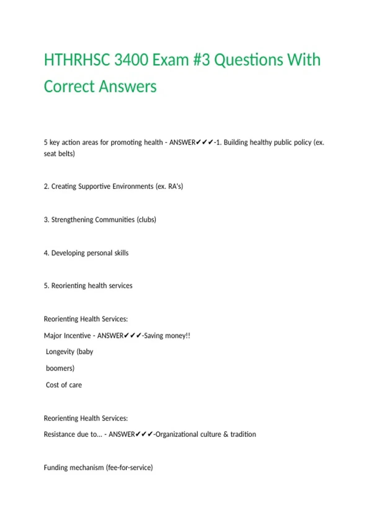 HTHRHSC 3400 Exam -3 Questions With Correct Answers.